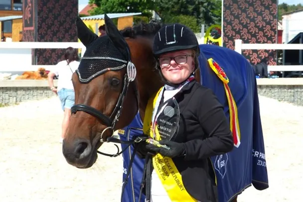 Srpen přinesl obrovský úspěch. Na MČR v paradrezuře, které se konalo ve Zduchovicích, jsme opět slavili vítězství. Naše paradrezurní jezdkyně Tereza Dubcová s koněm Erinem znovu ukázali, že poctivá příprava, pravidelná práce, ale také kvalitní výživa nesou své ovoce. Tereza soutěžila v V. skupině, kam byla kvůli svému hendikepu zařazena. Následně hned v této skupině (grade V.) získala zlato v oficiální soutěži a stala se mistryní ČR ve skupinách III. – V.