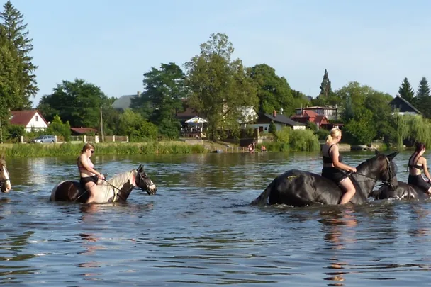 Léto se neslo ve znamení příměstských táborů. Pro děti jsme otevřeli tři turnusy, při nichž trávily čas péčí o koně, ježděním a všelijakými soutěžemi a kvízy zaměřenými na nejrůznější zajímavosti z koňského světa. Léto je však také časem odpočinku a naši koně, kteří s námi celou sezónu poctivě pracují a zajišťují pravidelné hipoterapie i akce pro veřejnost, si chvíle klidu opravdu zaslouží. Proto se snažíme jim parné dny zpříjemnit plavením, nebo aspoň studenou ,,sprškou‘‘.